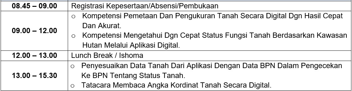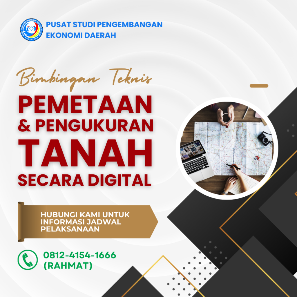 Untuk mendukung pemahaman mengenai Pemetaan Sertifikat Secara Digital (Plotting) dalam memberikan kepastian hukum terhadap hak atas tanah, maka Lembaga Pusat Studi Pengembangan Ekonomi Daerah (PUSPERA) bersama Narasumber yang berkompeten dibidangnya bermaksud akan menyelenggarakan kegiatan Bimbingan Teknis “Pemetaan Dan Pengukuran Tanah Secara Digital Untuk Mengetahui Secara Akurat Status Atas Tanah, Status Kepemilikannya Serta Ukurannya”